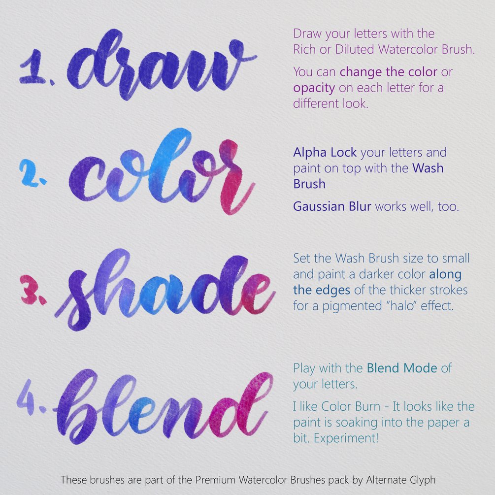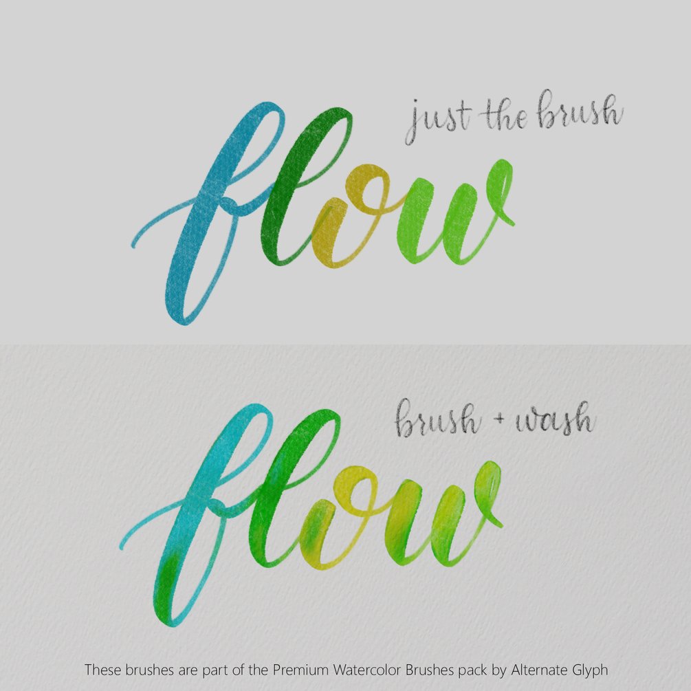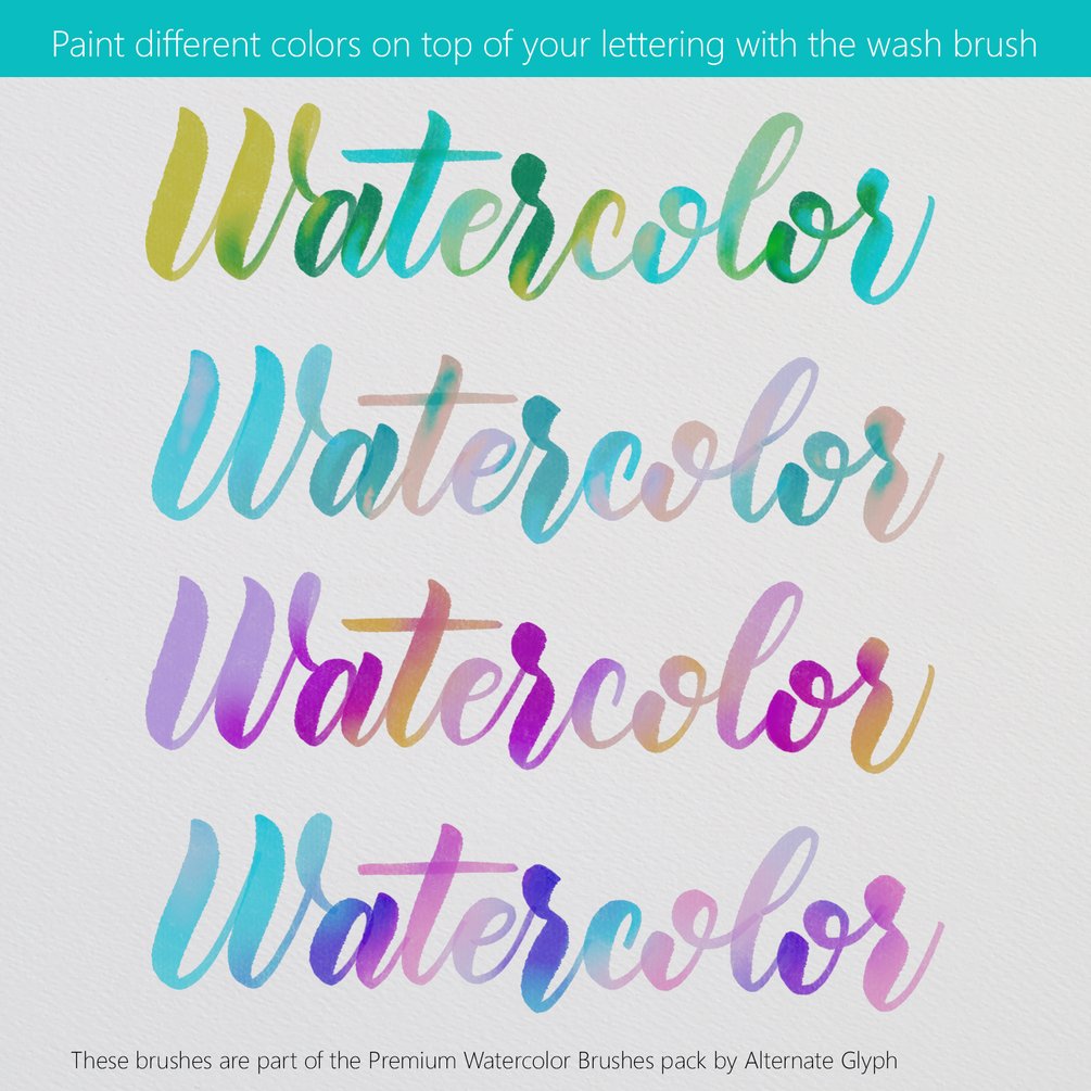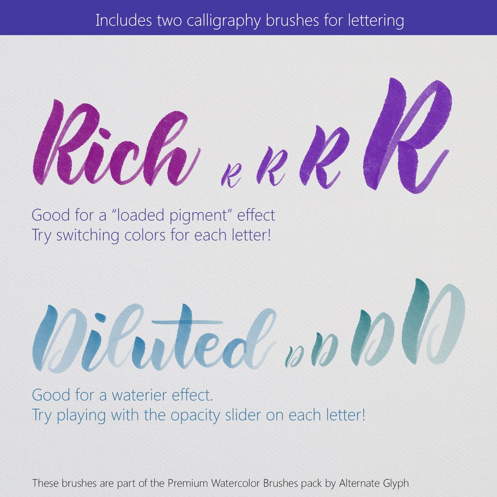 - The "Rich" watercolor brush for more solid, wet letters.
